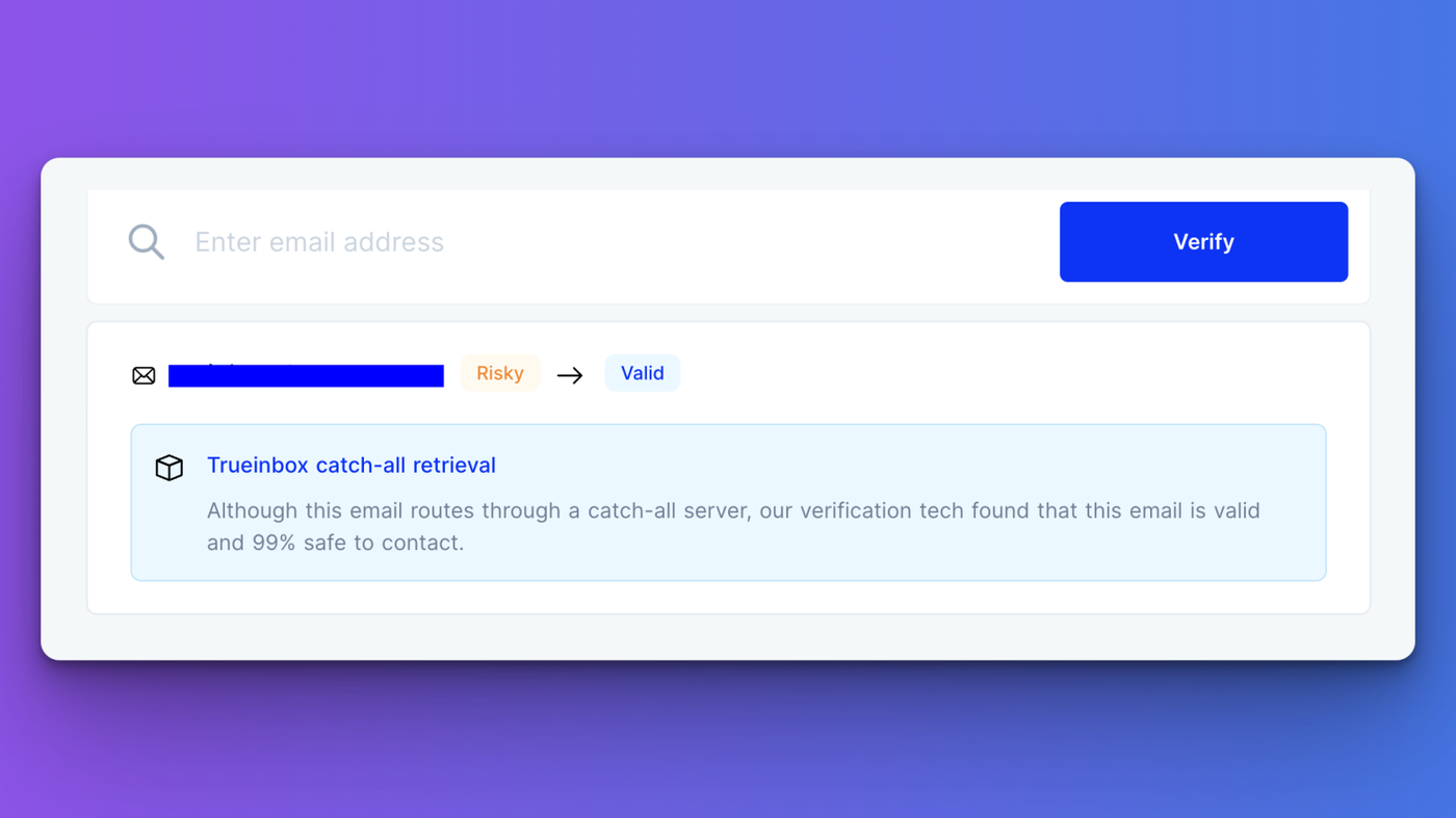 As you can see the above reference is from a catch-all server. Although this email routes through a catch-all server, our verification tech found that this email is valid and 99% safe to contact.